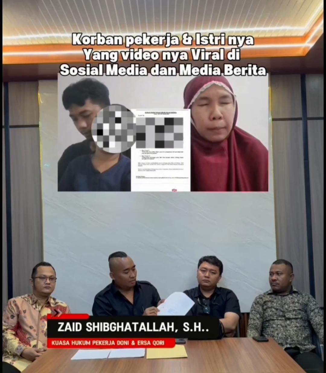 “Ya, kali ini saya mewakili klien saya (Doni dan Qori), pasangan suami istri yang sedang membela hak keadilannya. Mereka sudah memberikan kuasa kepada saya untuk membantu perkara yang kami rasa sangat memprihatinkan. Istri yang membela suaminya sebagai pekerja ini dituduh dan diancam akan ditembak, bahkan sampai dilecehkan secara verbal. Klien saya mengalami syok dan ketakutan secara psikologis,” ujar Zaid kepada wartawan.