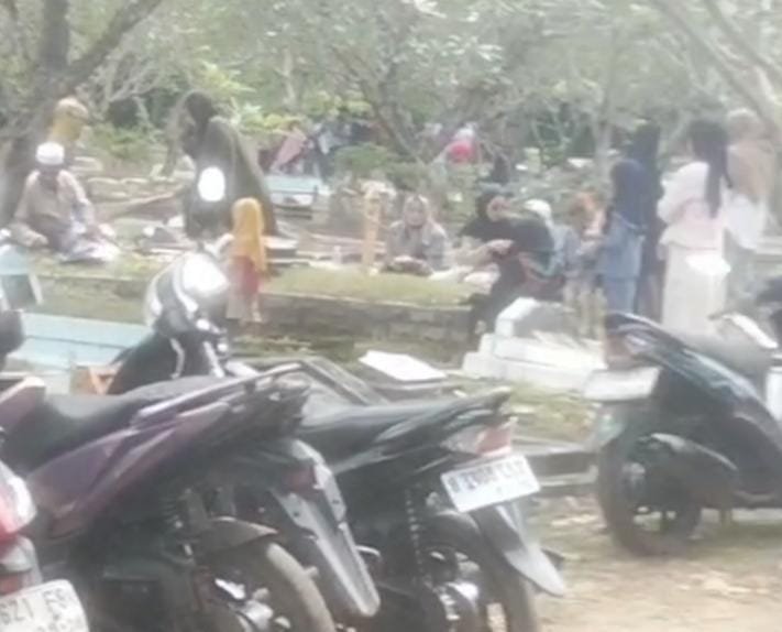Para peziarah datang silih berganti untuk berdoa secara langsung di pusara keluarga mereka. Area pemakaman pun terlihat lebih ramai dari biasanya, ditandai dengan deretan kendaraan yang terparkir di sekitar lokasi. Kendaraan roda dua atau sepeda motor mendominasi parkiran TPU tersebut.