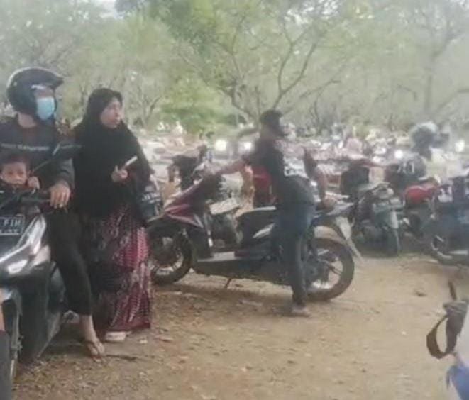 Para peziarah datang silih berganti untuk berdoa secara langsung di pusara keluarga mereka. Area pemakaman pun terlihat lebih ramai dari biasanya, ditandai dengan deretan kendaraan yang terparkir di sekitar lokasi. Kendaraan roda dua atau sepeda motor mendominasi parkiran TPU tersebut.
