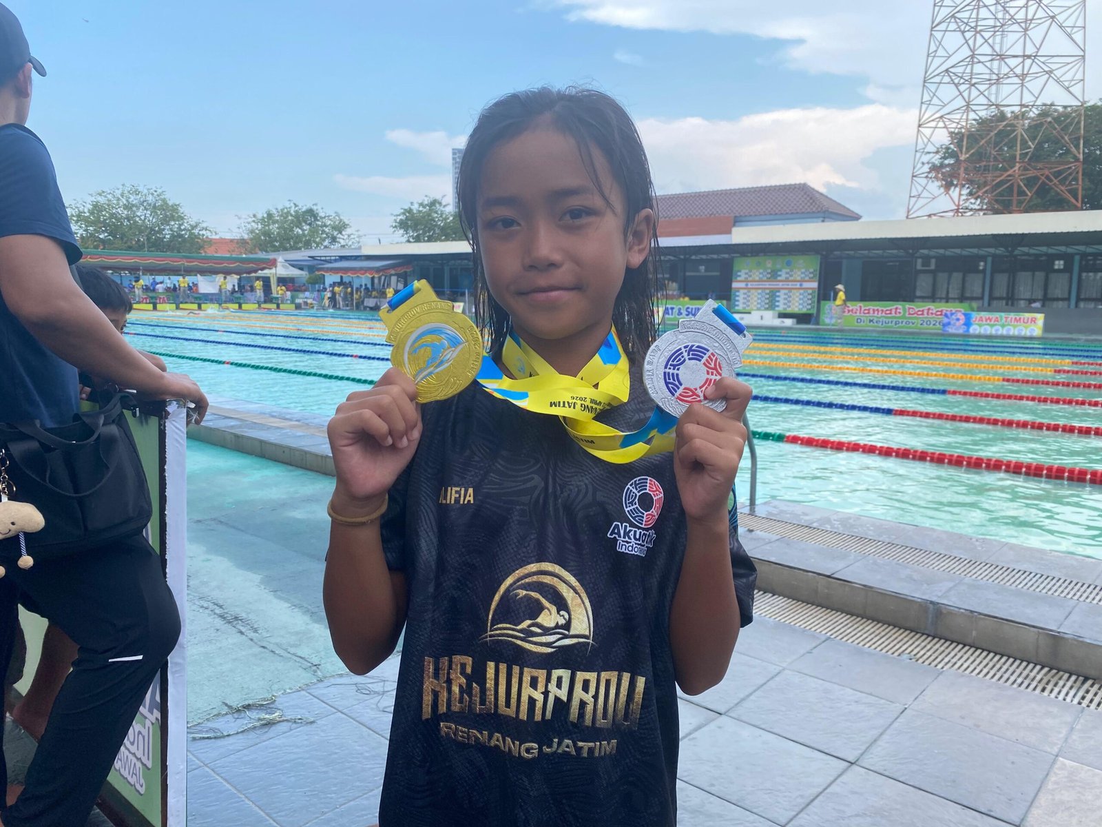Foto : Raih 1 Medali Emas, 1 Perak 2 Perunggu, Alifia Ratu Askha Torehkan Prestasi Gemilang di Kejurprov Renang 2026, Minggu (12/4/2026).
