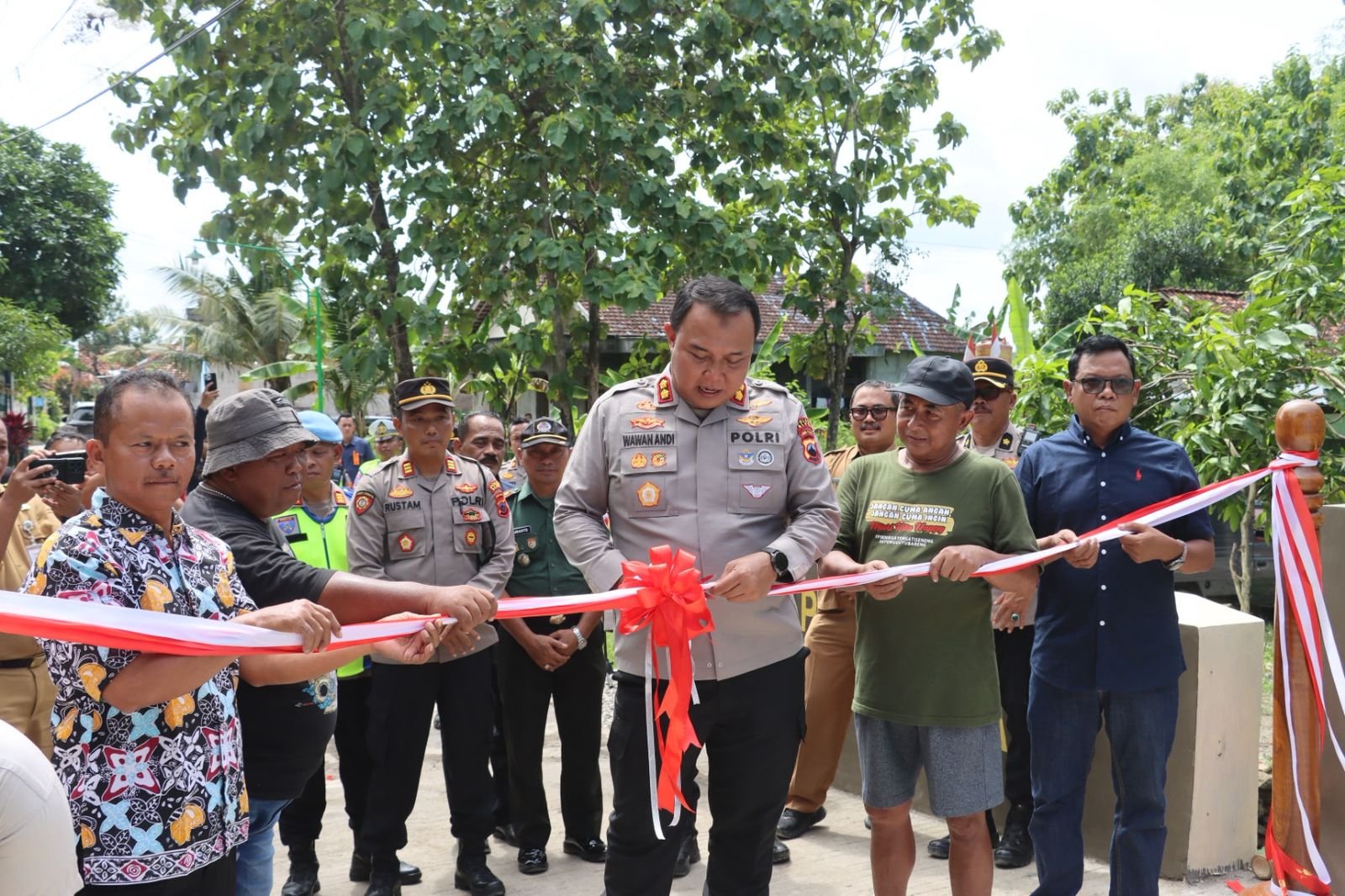 Peresmian jembatan penghubung antar desa/kelurahan tersebut dipimpin langsung oleh Kapolres Blora, AKBP Wawan Andi Susanto, S.H., S.I.K., M.H., didampingi oleh Wakapolres Kompol Slamet Riyanto, S.H., M.H., serta jajaran Pejabat Utama (PJU) Polres Blora dan Forkopimcam Blora.